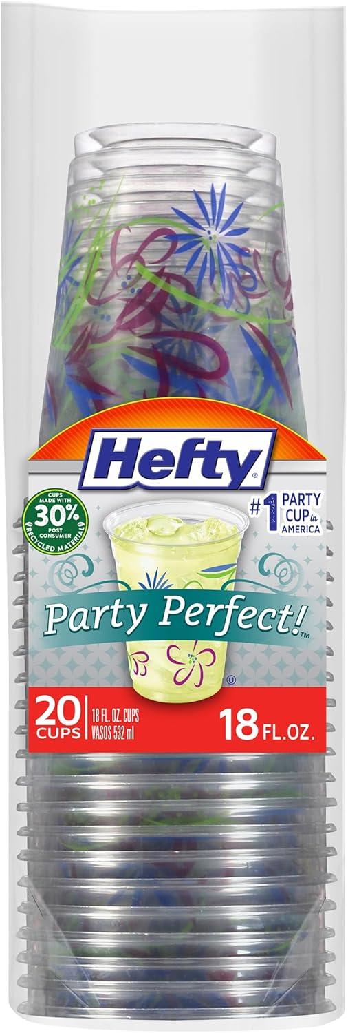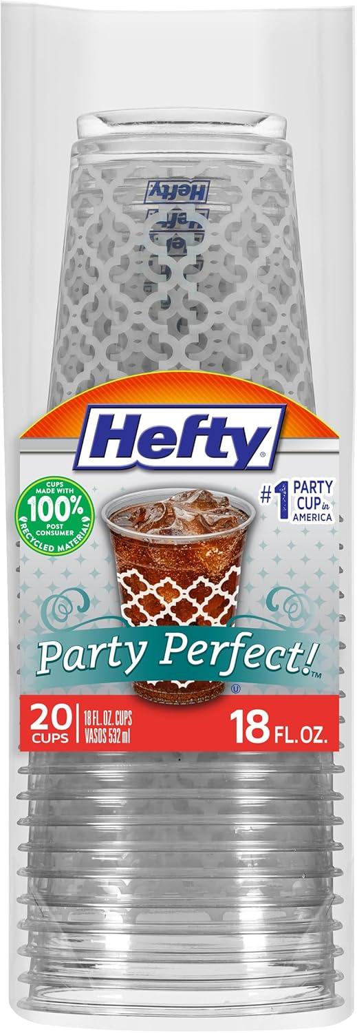 Hefty Party Perfect Clear Plastic Cups, 18 Ounce, 20 Count(9 Ounces)