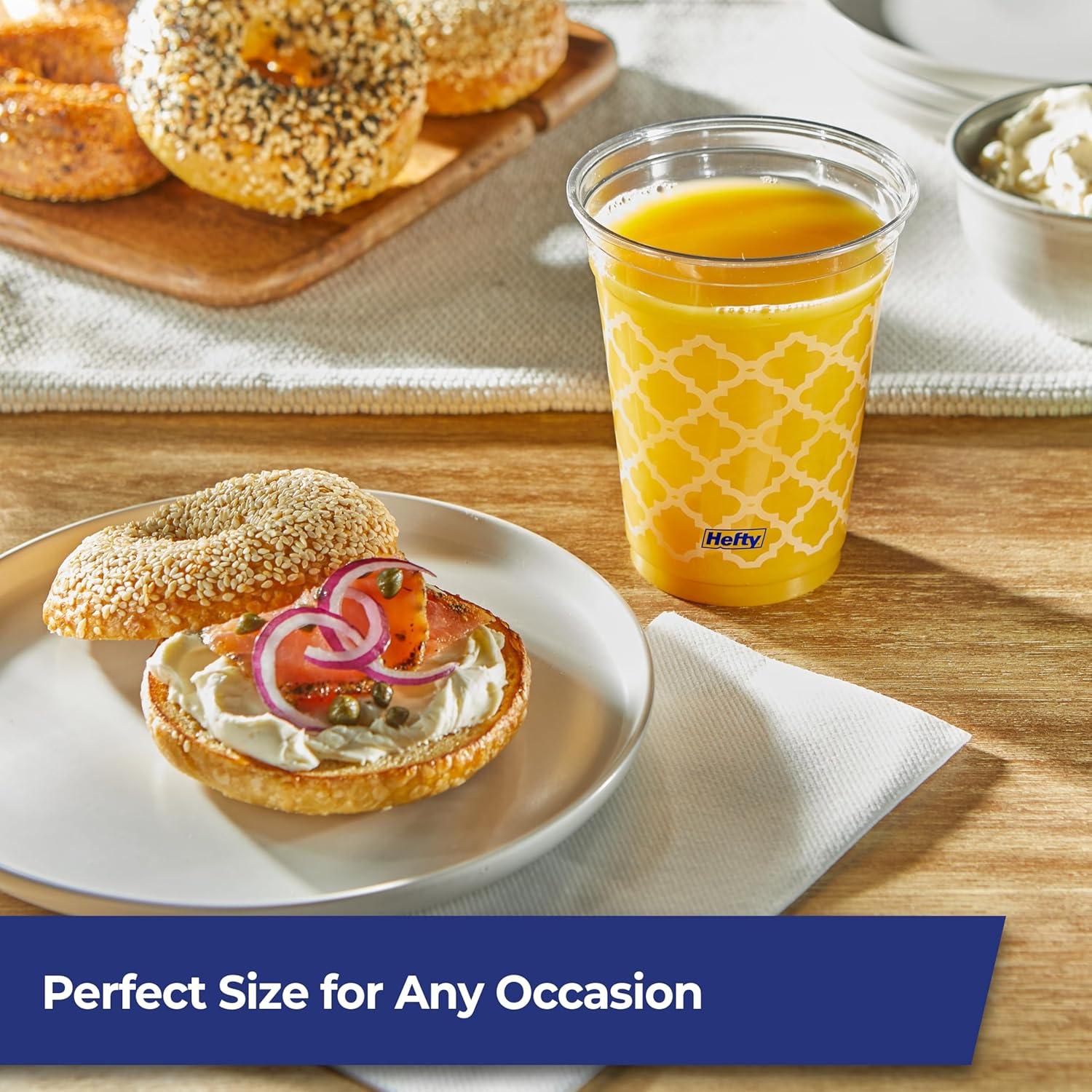 Stock up on Hefty Party Perfect Clear Plastic Cups before your next party for a convenient, attractive and practical way to serve beverages to your guests. Made for optimal clarity, these durable, clear disposable plastic cups are premium quality, shatter-resistant and offer an upscale and elegant look for entertaining without the mess. Great for any occasion—large or small, casual or fancy—these clear party cups blend seamlessly with your colors, theme and decor. In addition to easily serving cold and room-temperature beverages of all sorts, these disposable cups can also be used for a polished presentation of snacks and desserts like parfaits. Made with toughness you can trust, these disposable, shatter-resistant cups let you enjoy your party without worrying about broken glassware or a pile of dishes in the sink. Don’t forget: all Hefty plastic cups come with a 100% satisfaction guarantee.