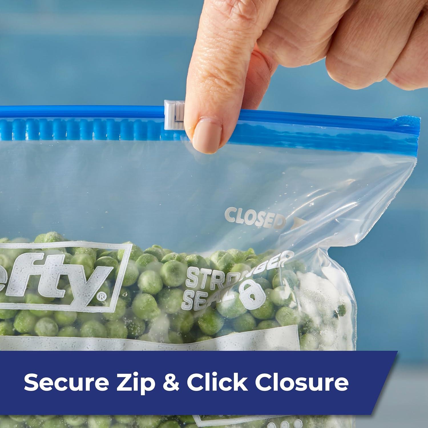 Portion bulk foods for freezer storage, or package treats and leftovers for friends and family with gallon size Hefty Slider Freezer Bags. The thicker plastic and extra-strong seal helps keep food fresh and protected from freezer burn. The patented MaxLock track and Clicks-Closed feature lets you know when these BPA-free plastic freezer bags are securely closed. The stand-and-fill expandable bottom makes it easy to load food, craft supplies or other household items into these storage bags. Large write-on labels let you identify and organize the contents of each of these slider bags in your fridge, freezer or closet. Take these Hefty freezer bags with you on-the-go, too! Keep clothes fresh and wrinkle free in suitcases or keep camping supplies protected from mess. Don’t forget; Hefty's premium quality and super strength come with superior savings and a 100% satisfaction guarantee