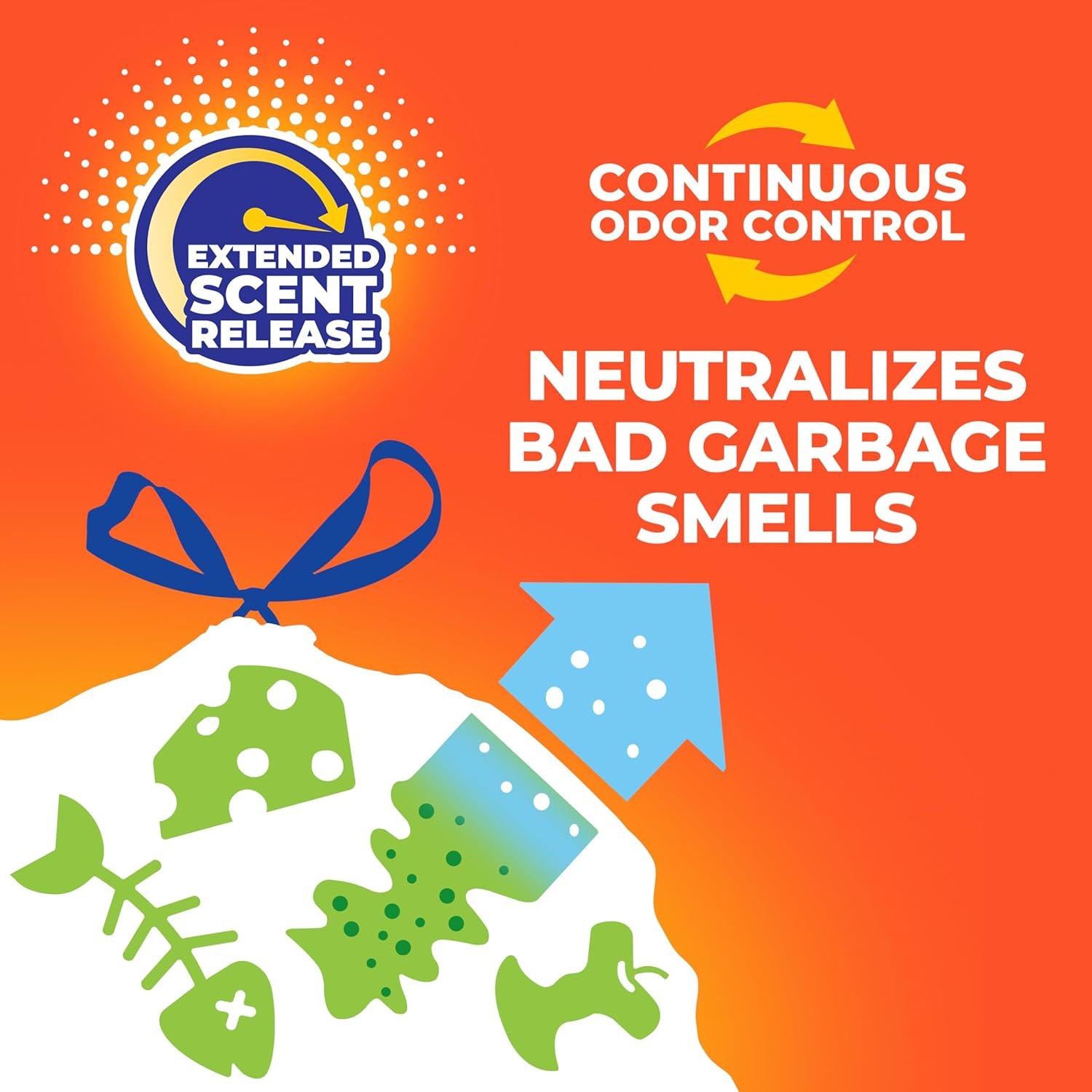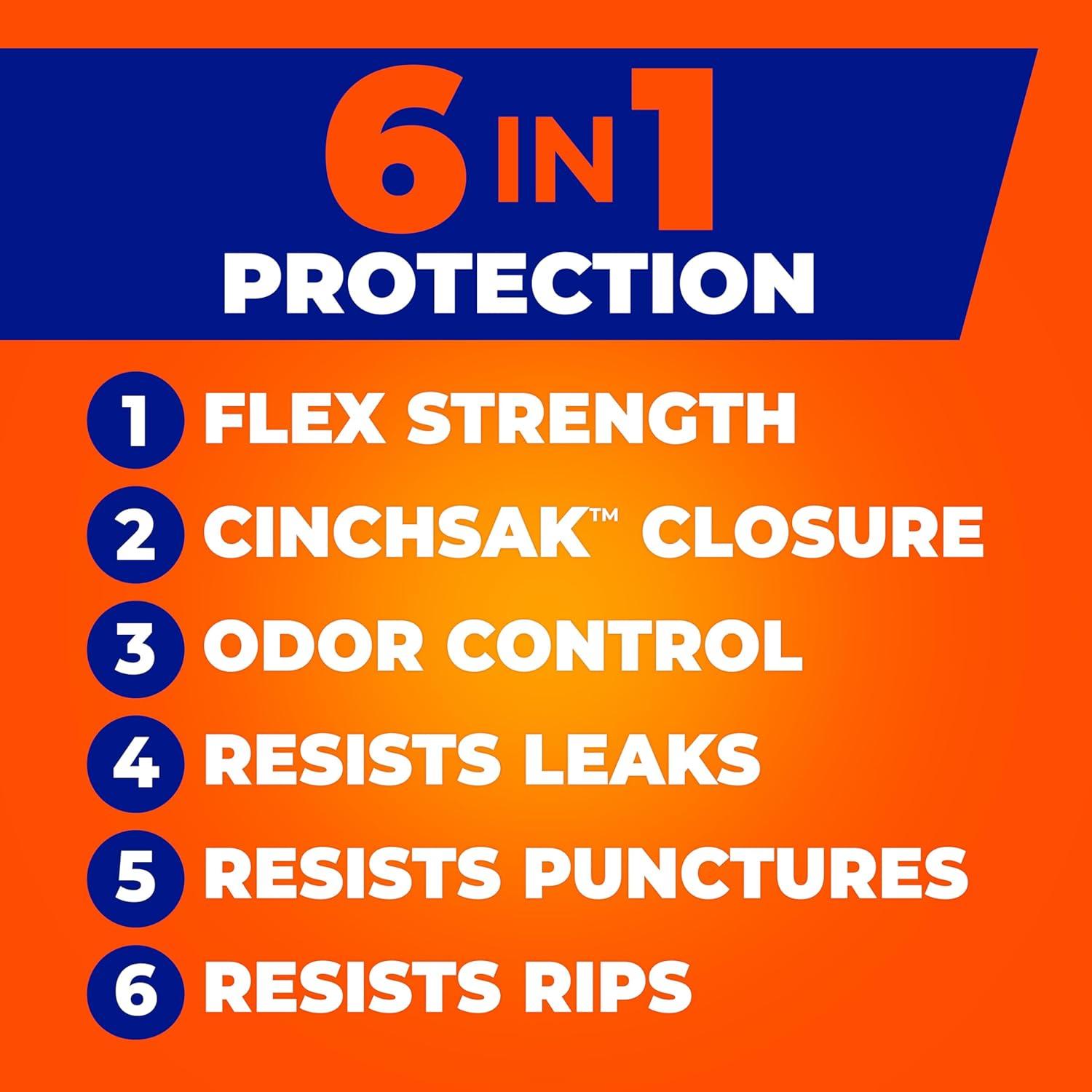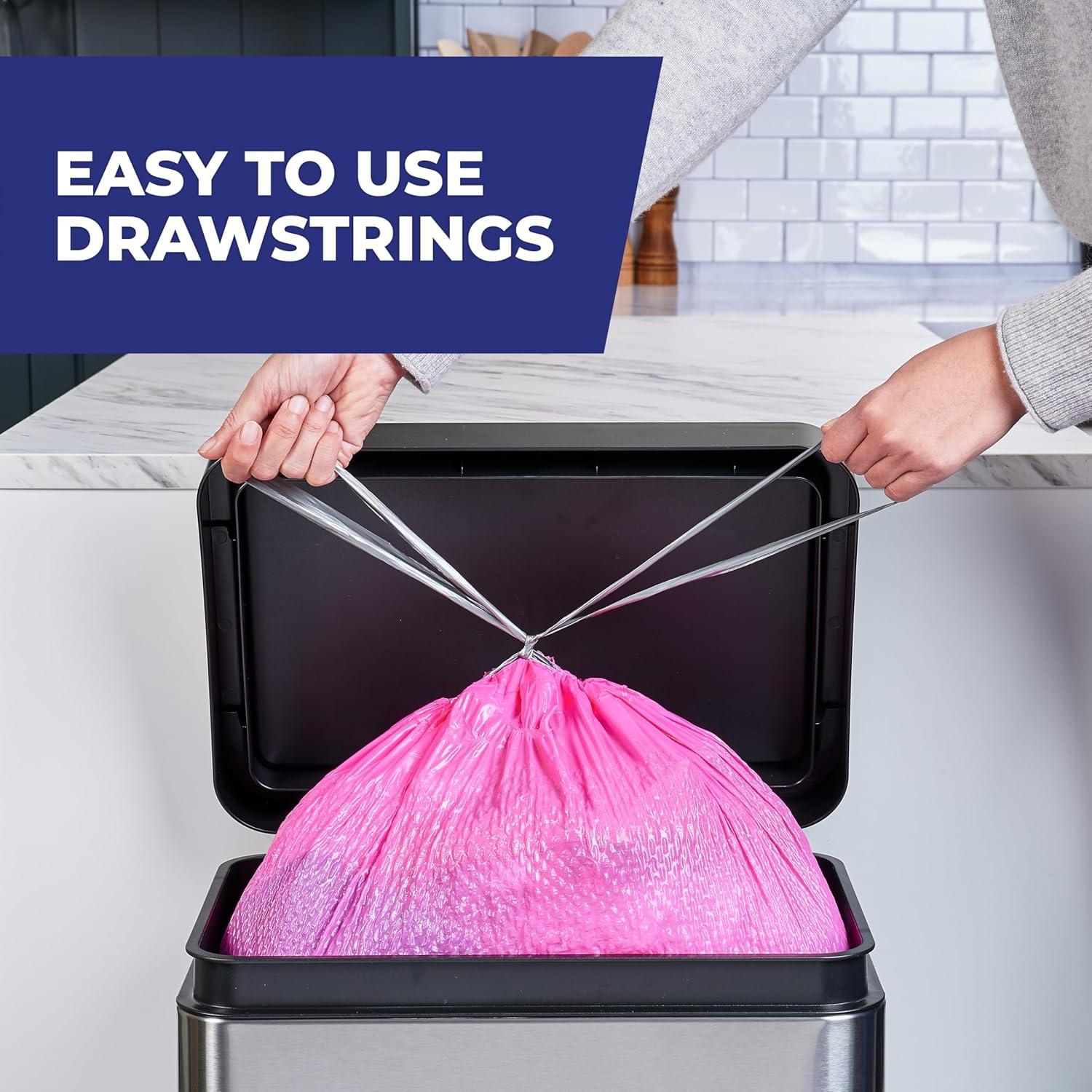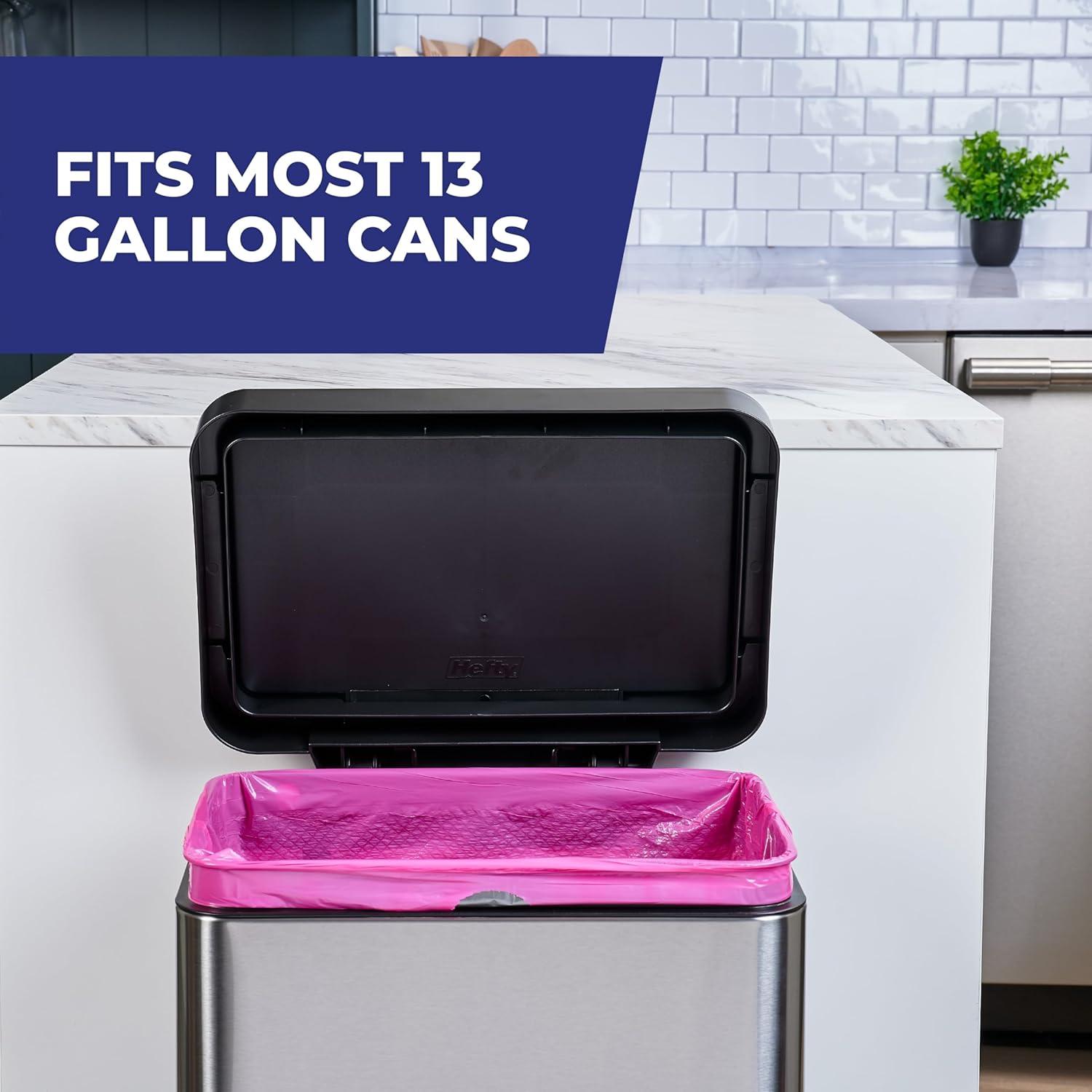 Trust Hefty Ultra Strong 13 Gallon Trash Bags to keep your kitchen waste contained—all the way from the can to the curb. Thanks to 6-in-1 Protection, these tall kitchen trash bags offer flexible strength, a CinchSak™ closure, continuous odor control, and resistance to leaks, punctures, and rips. The result is the highest protection you can get in flexible 13 gallon trash bags. Hefty’s stretchy strength means you don't have to worry about unexpected bag breakage and inconvenient messes when you use these tall kitchen garbage bags. A break-resistant grip drawstring makes it easy to close the bag and cart it away without incident. As a bonus, these scented trash bags feature a vibrant pink color and include a Fabuloso Watermelon scent with extended scent release and continuous odor control to keep unpleasant smells at bay and keep your kitchen smelling fresh and clean. All Hefty trash bags are backed by a 100% satisfaction guarantee. *Fabuloso (R) and associated designs are trademarks of Colgate-Palmolive Company and are used under license.